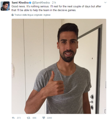 Il centrocampista della Juventus Sami Khedira durante la sfida con il Monaco pochi minuti è stato costretto al cambio. I...