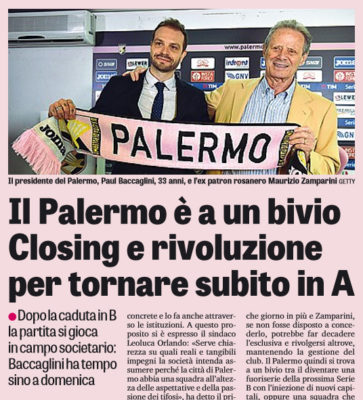"Adesso che la Serie B è una certezza, la partita per il Palermo si gioca sul fronte della cessione societaria....