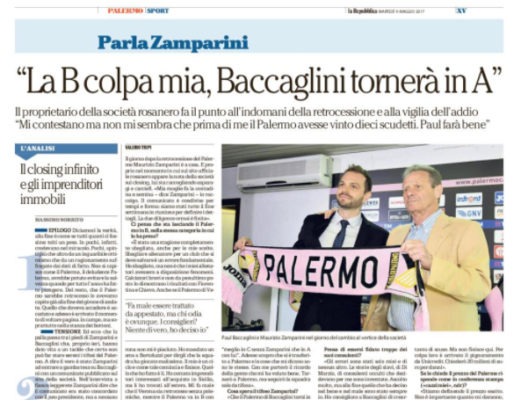 "Il giorno dopo la retrocessione del Palermo Maurizio Zamparini è a casa. E proprio nel momento in cui sul sito...