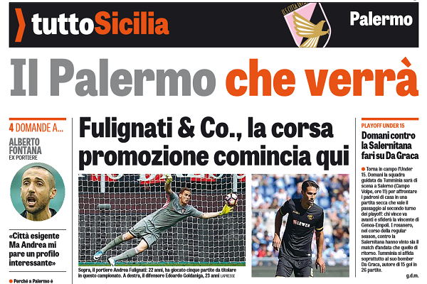 Intervistato da "La Gazzetta dello Sport" l'ex rosanero Alberto Fontana si è così espresso in merito a Posavec e Fulignati:...