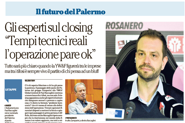 "C’è chi aspetta fiducioso e chi ha già perso la pazienza. Il passaggio delle quote del Palermo dal gruppo Zamparini...
