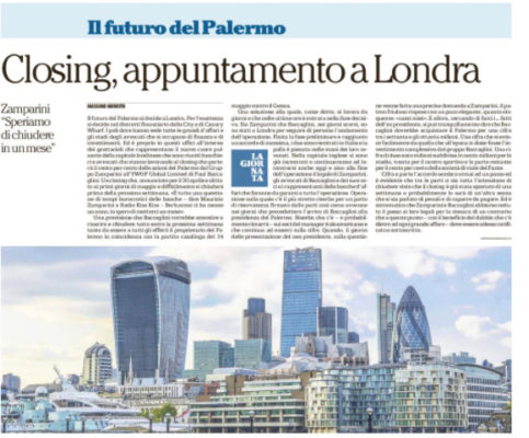 "Il futuro del Palermo si decide a Londra. Per l’esattezza si decide nel distretti finanziario della City e di Canary...