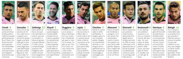 L’edizione odierna de “Il Giornale di Sicilia” ha stilato le pagelle del match vinto ieri dal Palermo contro l’Empoli. Il...