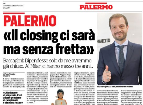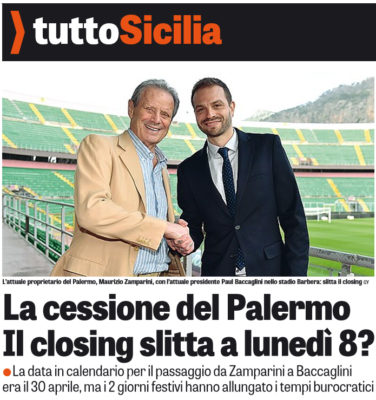 "Niente closing, almeno per adesso. Ma l’operazione tra Zamparini e Baccaglini per l’acquisizione del Palermo non sembra messa in discussione....