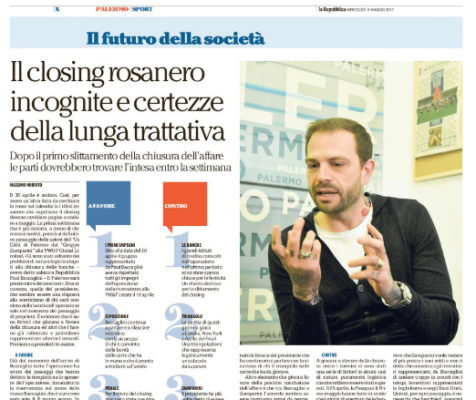 Repubblica: “Il closing rosanero incognite e certezze della lunga trattativa”