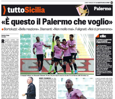 Gazzetta dello Sport: “Record Bortoluzzi. Il quinto tecnico stagionale del Palermo è imbattuto in casa”