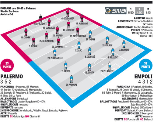 “In un Palermo-Empoli mai cosi decisivo da quando entrambe le squadre si affrontano in massima serie, i toscani possono contare...