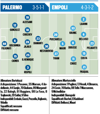 L'edizione odierna di "Tuttosport" ha stilato le probabili formazioni di Palermo-Empoli in programma domani sera. Ecco quanto si legge: "Palermo Rispoli...