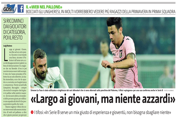 Giornale di Sicilia: “Palermo, va bene puntare sui giovani. Ma in B serve gente in grado di vincere un campionato”