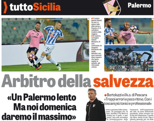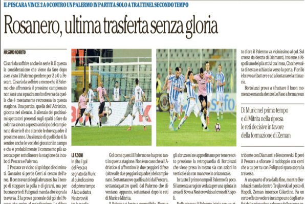 "Il Palermo cade, ma lascia Pescara tra gli applausi di un gruppo di cinquanta coraggiosi tifosi rosanero che hanno tifato...