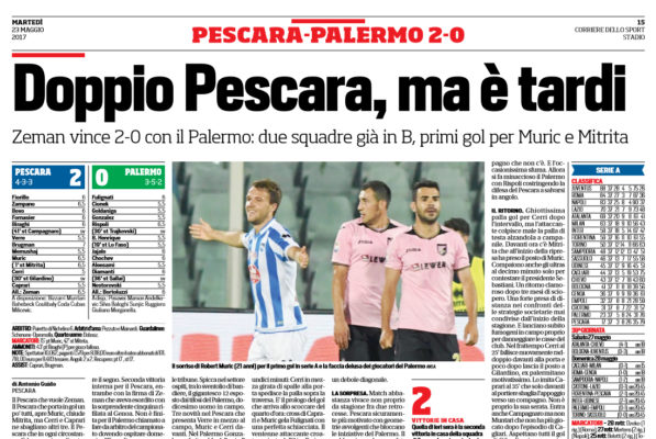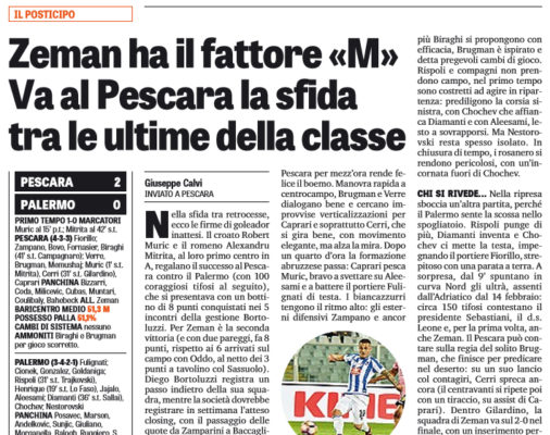 "Il Pescara che vuole Zeman. Il Pescara che porta in gol un po' tutti, apre Muric, chiude Mitrita, ma Cerri...