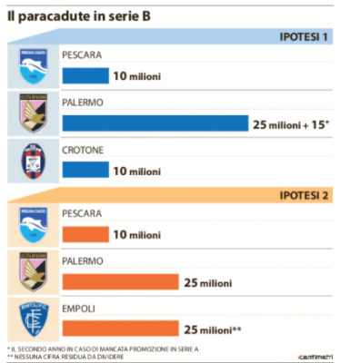 L'edizione odierna de "La Repubblica" riporta un grafico che spiega le due ipotesi in cui i rosanero prenderanno il paracadute...