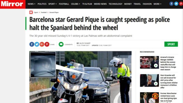 Brutta grana per Gerard Piqué. Il difensore del Barcellona, secondo quanto riportato dal "Mirror", è stato bloccato da una pattuglia...