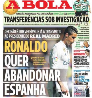 Cristiano Ronaldo ha chiesto di lasciare il Real Madrid. A scriverlo è il quotidiano portoghese "A Bola", secondo il quale...