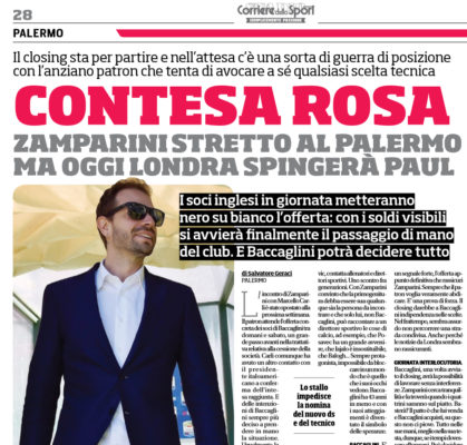 "L'incontro di Zamparini con Marcello Carli è stato spostato alla prossima settimana. Il patron attende l'offerta concreta dei soci di...