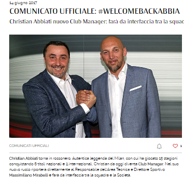 Il Milan annuncia tramite il proprio sito ufficiale il ritorno in rossonero di Christian Abbiati. L'ex portiere avrà il ruolo...