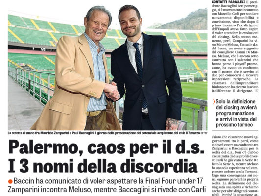 “I tempi stringono anche per la trattativa relativa al passaggio delle quote da Zamparini a Baccaglini, una fase di stallo...