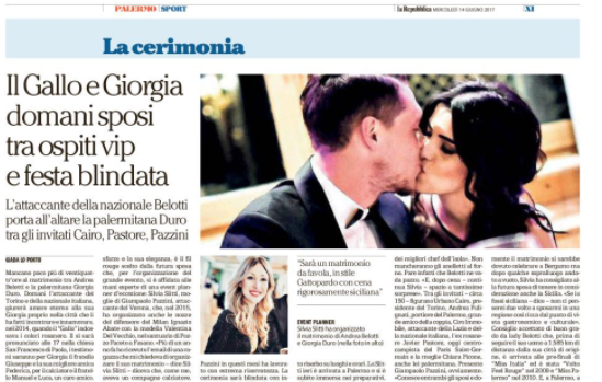 "Mancano poco più di ventiquattr’ore al matrimonio tra Andrea Belotti e la palermitana Giorgia Duro. Domani l’attaccante del Torino e...