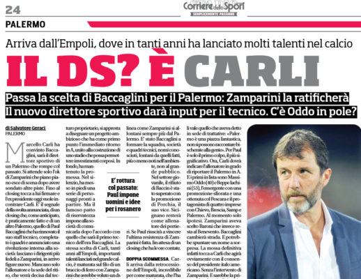 "Marcello Carli ha convinto Baccaglini, sarà il direttore sportivo di un Palermo che rompe col passato. Si attende solo l'ok...