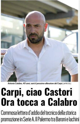 "Cominciamo da un addio: quello di Fabrizio Castori che ha salutato Carpi, dove ha conquistato una storica promozione in Serie...