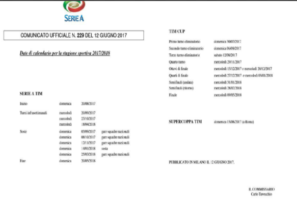 "Il Presidente Federale Carlo Tavecchio, visto il Comunicato Ufficiale 174/A dello scorso 29 maggio, con il quale è stata revocata...