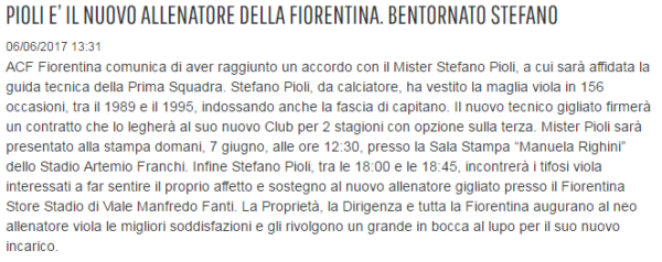 La Fiorentina annuncia tramite il proprio sito ufficiale l'arrivo di Stefano Pioli come nuovo allenatore del club. Di seguito il...
