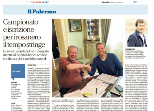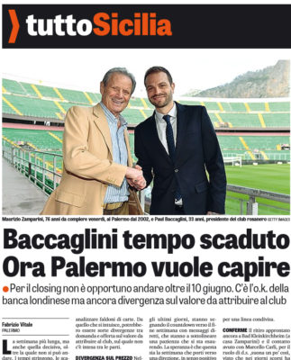 Gazzetta dello Sport: “Baccaglini, tempo scaduto. Ora Palermo vuole capire. C’è l’o.k. della banca londinese, ma ancora divergenza sul valore da attribuire al club”