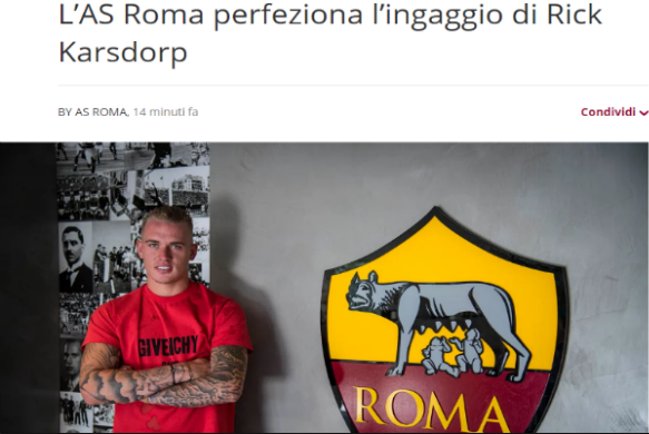 Attraverso una nota sul proprio sito ufficiale, la Roma ha ufficializzato l'acquisto di Rick Karsdorp. Ecco il comunicato: "Da oggi, Rick Karsdorp...