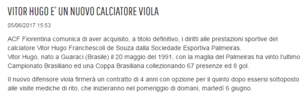 La Fiorentina annuncia tramite il proprio sito ufficiale il primo colpo del suo calciomercato. Si tratta del difensore centrale classe...
