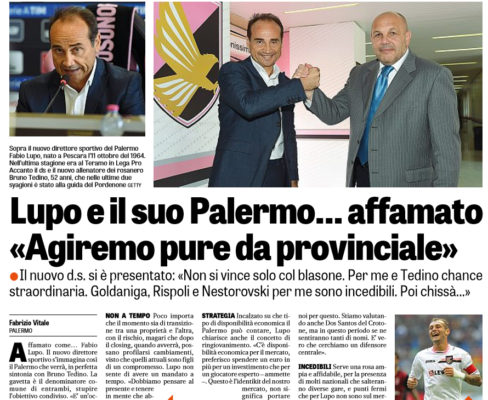 "Affamato come… Fabio Lupo. Il nuovo direttore sportivo s’immagina così il Palermo che verrà,in perfetta sintonia con Bruno Tedino. La...