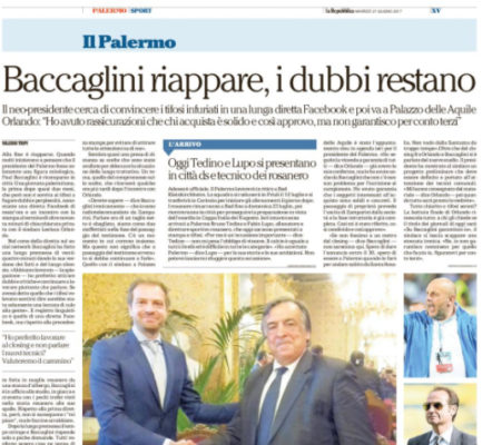 "Riconquistare la massima serie è dunque il traguardo fissato da Baccaglini, di concerto con Zamparini, che per il momento rimane...