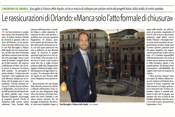 Giornale di Sicilia: “Le rassicurazioni di Orlando: «Manca solo l’atto formale di chiusura»”