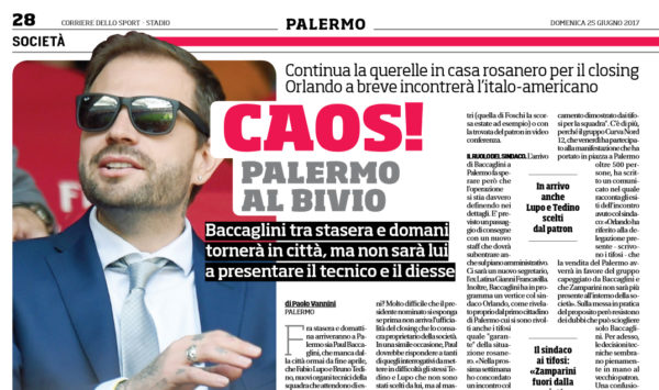 Corriere dello Sport: “Caos! Palermo al bivio: Baccaglini tra stasera e domani tornerà in città, ma non sarà lui a presentare il tecnico e il ds”