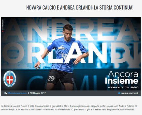 Il Novara calcio annuncia tramite il proprio sito ufficiale di aver rinnovato il contratto con il centrocampista Andrea Orlandi. Di...