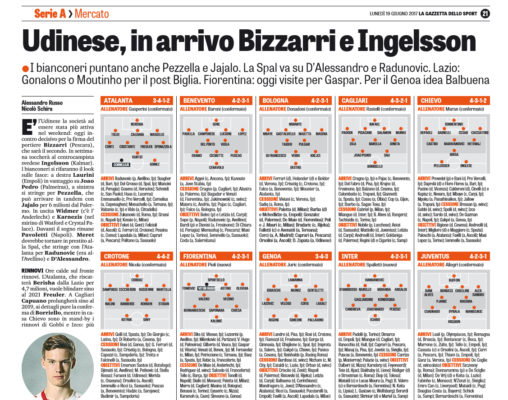 "E’ l’Udinese la società ad essere stata più attiva nel weekend: oggi incontro decisivo per la firma del portiere Bizzarri...