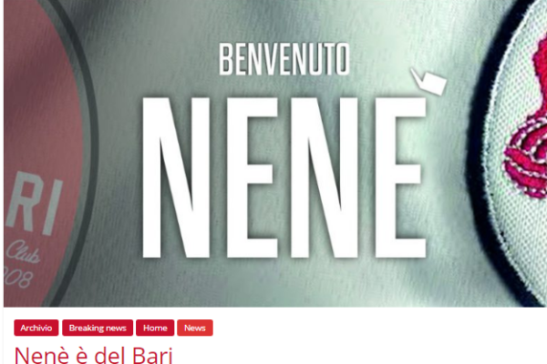 "F.C. Bari 1908 comunica di aver acquisito i diritti sportivi del calciatore Miguel Da Silva Anderson – Nenè – (28...