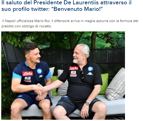 Attraverso il proprio sito ufficiale il Napoli annuncia l'arrivo, dalla Roma, del terzino Mario Rui. Di seguito il comunicato: "Il...