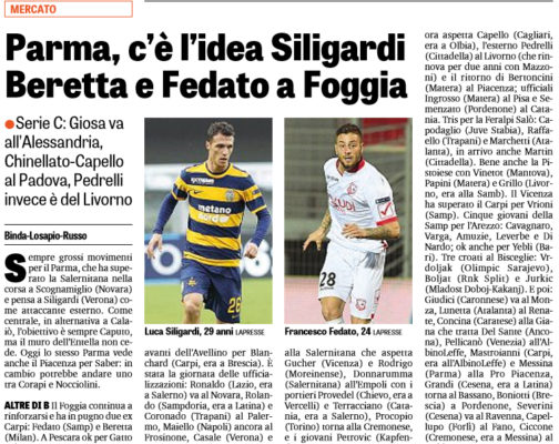 "Sempre grossi movimenti per il Parma, che ha superato la Salernitana nella corsa a Scognamiglio (Novara) e pensa a Siligardi...