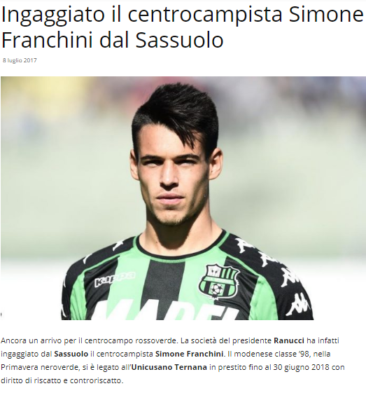 L'Unicusano Ternana, annuncia tramite il proprio sito ufficiale, di aver ingaggiato, in prestito con diritto di riscatto, dal Sassuolo il...
