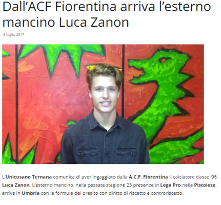 "L’Unicusano Ternana comunica di aver ingaggiato dalla A.C.F. Fiorentina il calciatore classe ’96 Luca Zanon. L’esterno mancino, nella passata stagione 23 presenze in Lega Pro nella Pistoiese,...