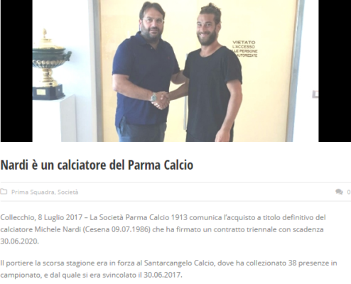 Il Parma, tramite il proprio sito ufficiale, annuncia l'arrivo dal Santarcangelo del portiere Michele Nardi. Di seguito il comunicato del...