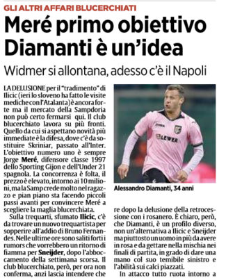 "Dopo quanto avvenuto con Ilicic la Samp rimane ovviamente prudente, ma un piccolo spiraglio per Sneijder va ancora lasciato aperto....
