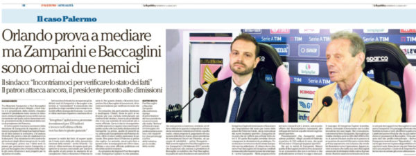 "Tra Maurizio Zamparini e Paul Baccaglini ormai volano gli stracci. Meglio, a farli volare è il proprietario della società rosanero...