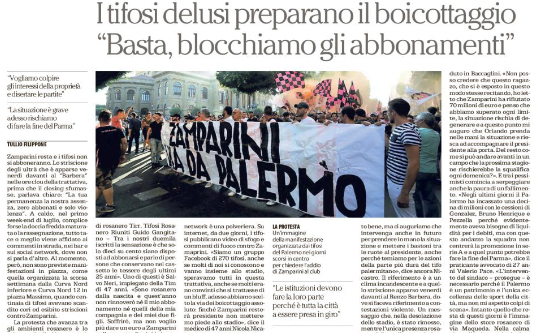 "Zamparini resta e i tifosi non si abboneranno. Lo striscione degli ultrà che è apparso venerdì davanti al “Barbera” nelle...