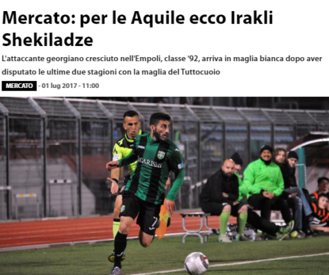 Lo Spezia calcio annuncia tramite il proprio sito ufficiale di aver prelevato dal Tuttocuio l'attaccante classe '92 Sheklidze. Di seguito...