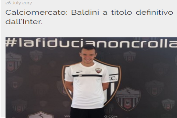 Attraverso una nota sul proprio sito ufficiale, l'Ascoli annuncia l'acquisto di Enrico Baldini dall'Inter. Ecco il comunicato: "L'Ascoli Picchio FC 1898...