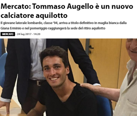 "Lo Spezia Calcio comunica di aver trovato l'accordo per l'acquisto a titolo definitivo dall'A.S. Giana Erminio del giovane difensore, classe '94, Tommaso...