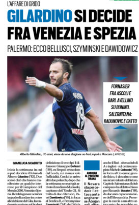 Tuttosport: “Palermo, ecco Bellusci, Szyminski e Dawidowicz. Gilardino…” – tutte le trattative del giorno in serie B