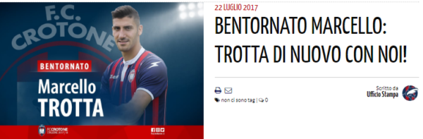 Crotone, UFFICIALE: torna Trotta dal Sassuolo – il comunicato