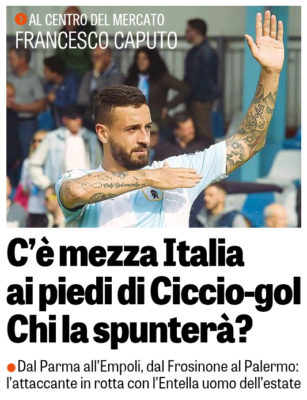 L'edizione odierna de "La Gazzetta dello Sport" analizza il mercato che gira intorno a Ciccio Caputo, l'attaccante stella dell'Entella, in...